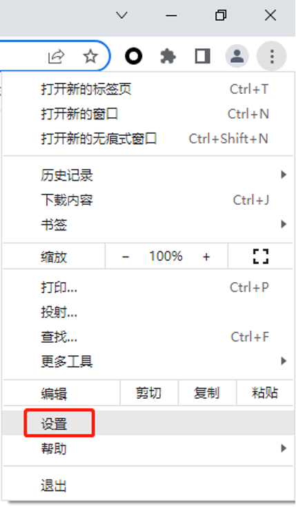 2、在下拉菜单中点击“设置”