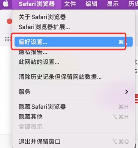 2、在弹出的菜单选项中选择“偏好设置”项